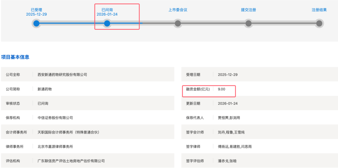 上交所发行审核网站显示,新通药业科创板 IPO“已问询”。