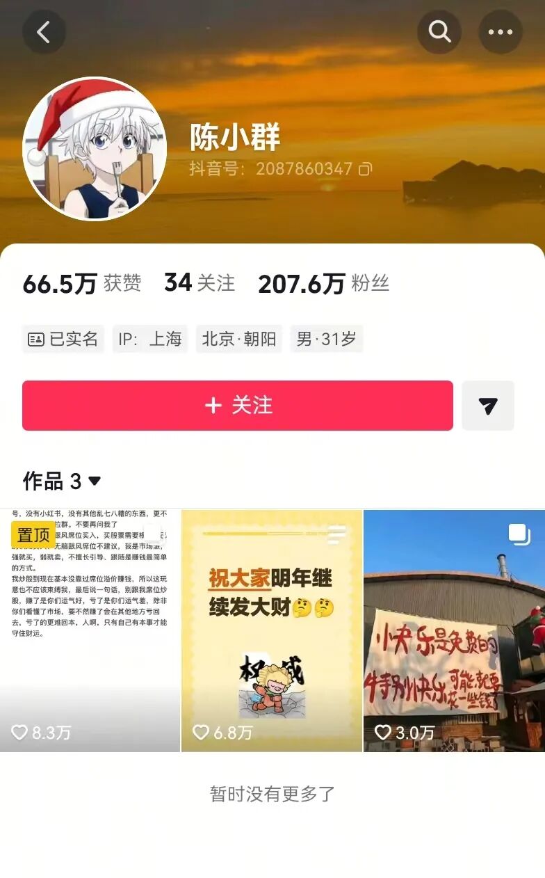 风暴山雨欲来:207.6 万粉丝陈小群清空dy!媒体调查:神秘游资“陈小群”是一场由多方合谋的“游资造神”运动