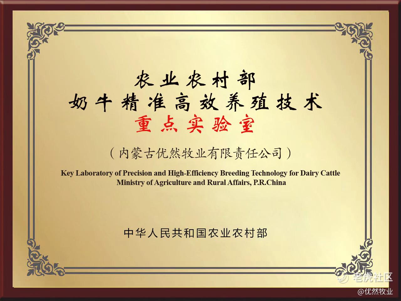 2026年1月,优然牧业研发中心正式被认定为“农业农村部奶牛精准高效养殖技术重点实验室”,成功跻身国家级科研示范阵营。