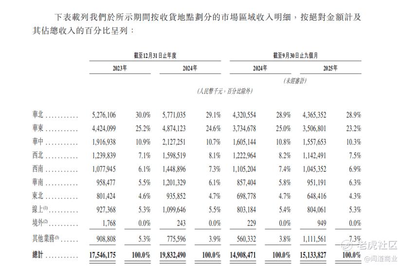 牧场虽高度集中,但君乐宝产品早已行销全国。截至2025年前三季度,君乐宝在华北、华东、华中、西北、西南以及华南地区收入占比分别为28.9%、23.2%、10.3%、7.5%、6.9%以及6.3%。