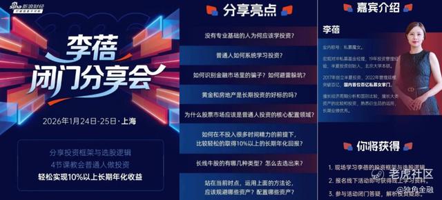 李蓓“卖课”的事件引发了不小的争议。2025年12月26日,李蓓在半夏投资公众号发了一篇《从0开始学投资》的文章,推出了“李蓓闭门分享会”,线下课于1月24日-25日在上海举行,每场2小时主题分享+1小时互动答疑,主要分享投资框架与选股逻辑。
