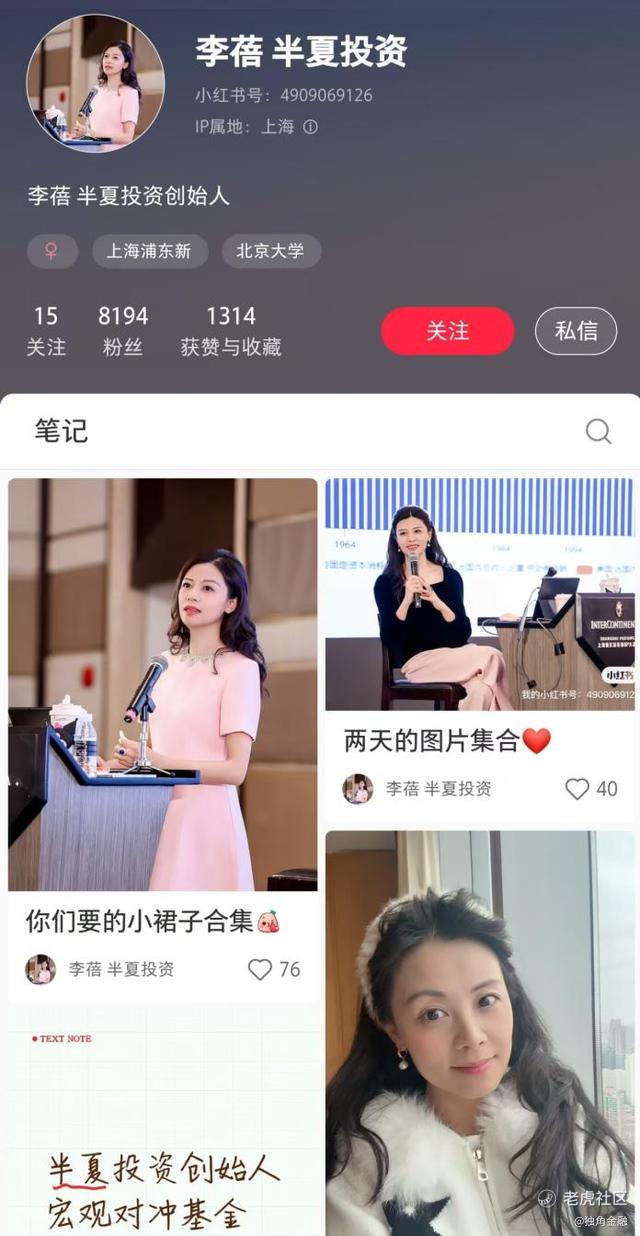 卖课后没多久,1月20日,一个名为“李蓓 半夏投资”的账号在小红书发了一篇笔记,介绍了自己的身份:半夏投资创始人、宏观对冲基金经理。有网友质疑其身份,该账号很快又发了一篇笔记,附上两张自拍照以证实身份。