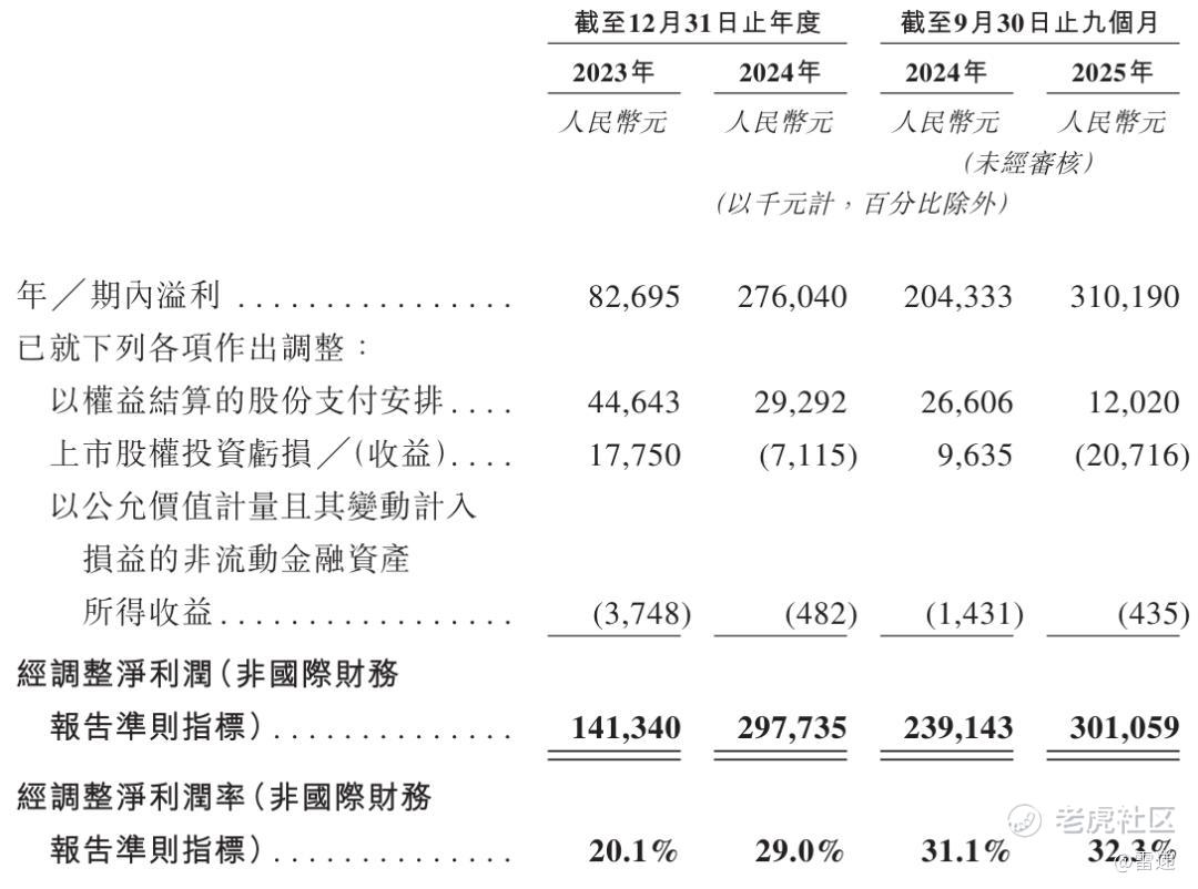 聚辰半导体2023年、2024年经调整净利分别为1.41亿、3亿元;2025年前9个月经调整净利为3亿元。