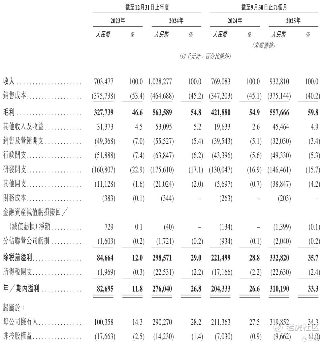 聚辰半导体2025年前9个月营收为9.33亿,较上年同期的7.69亿元增长21%;毛利为5.58亿元,期内利润为3.1亿元。