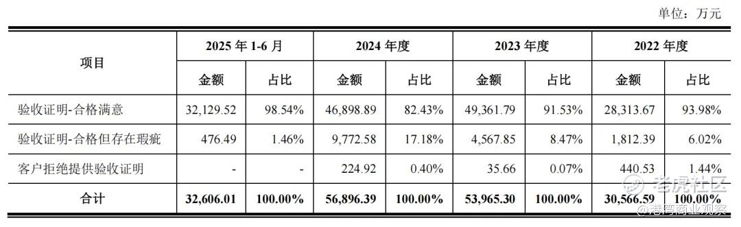 收入确认的真实性与合规性,成为监管问询的核心焦点之一。北交所明确指出,龙鑫智能报告期内存在验收单或验收单仅签字、邮件确认验收和客户未提供验收证明等多种情形,且验收证明附带整改情况(存在内容瑕疵)的项目收入规模逐年扩大,2024年该类收入达9772.58万元,占验收方式确认收入的比例高达17.18%。