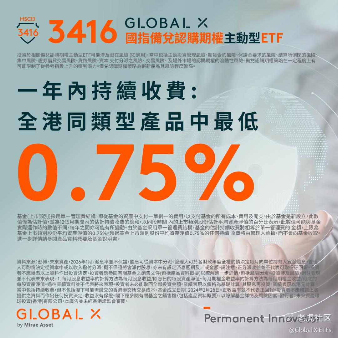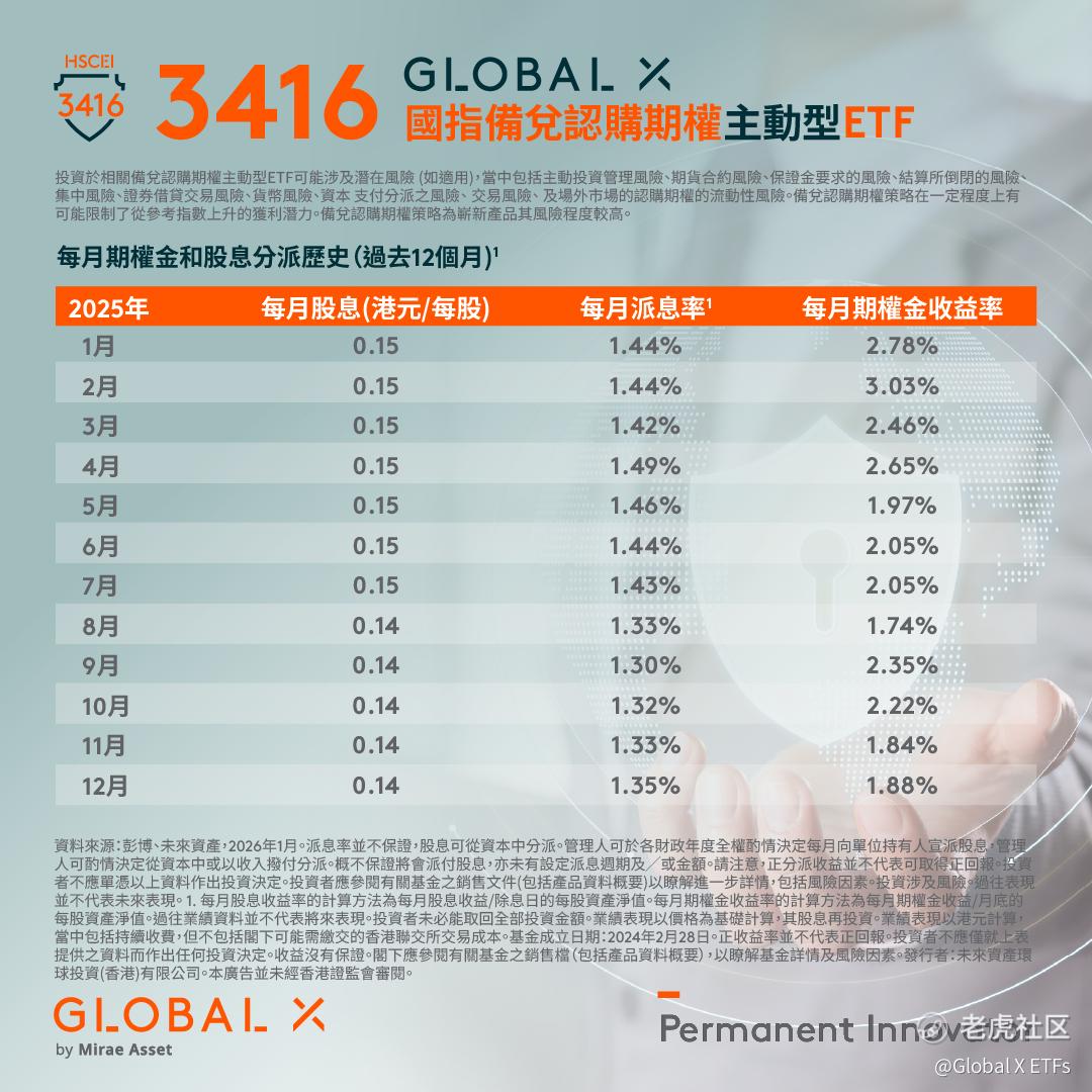【仅供香港投资者参考】Global X 国指备兑认购期权主动型 ETF(3416/ 9416/ 83416) $A GX国指备兑(03416)$ 为投资者提供创新的投资方法,利用收益#策略参与到广阔的市场中,在现今的波动市况下成为一个极具吸引力的投资工具。3416结合备兑认购期权策略,投资于恒生中国企业指数的同时,力求提升收益#潜力。