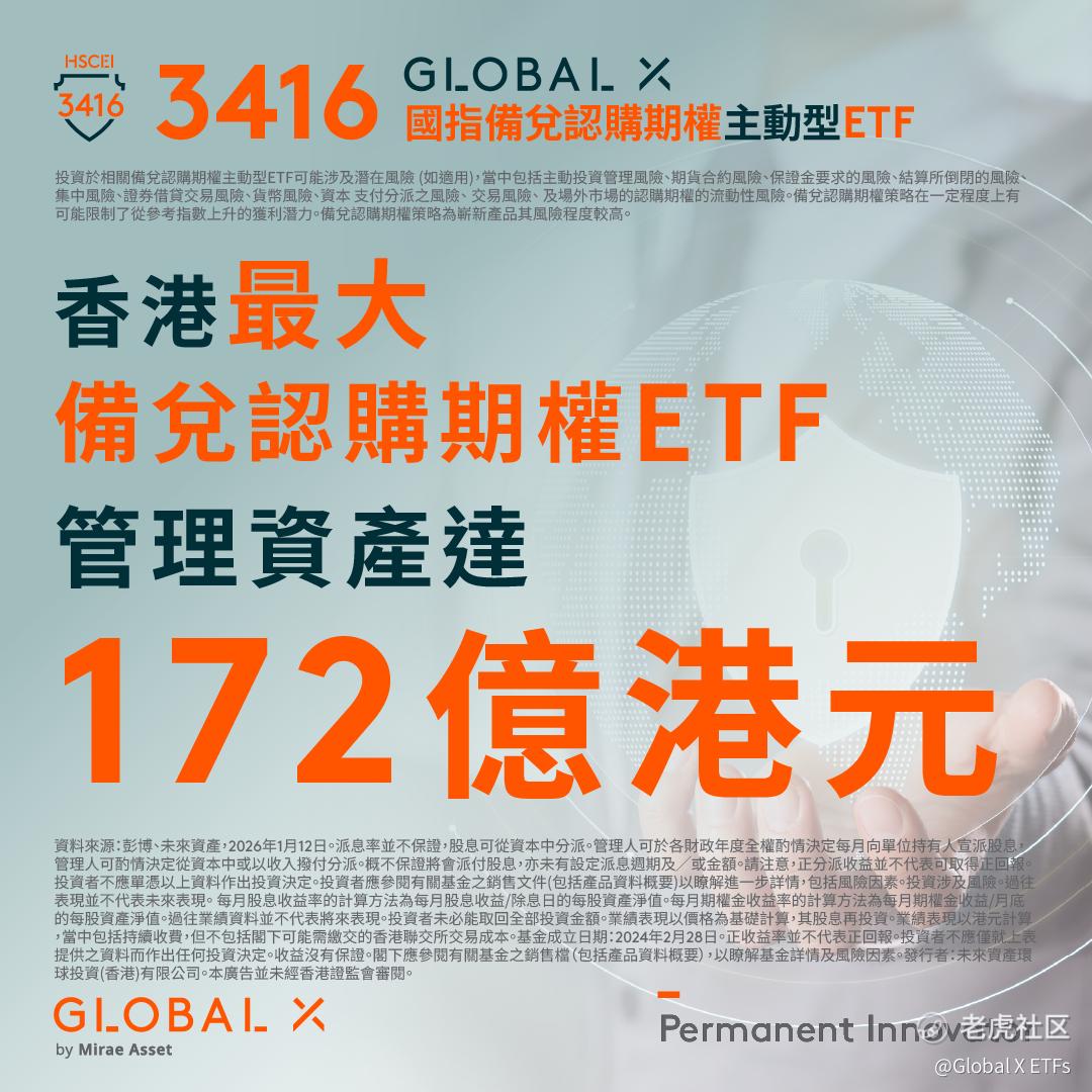 -          香港最大备兑认购期权 ETF,管理资产达 172 亿港元 (资料来源:未来资产, 2026年1月12日)