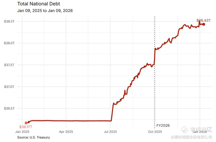 图2:2025年以来的国债余额,信息来源:Joint Economic Committee (JEC) , U.S. Treasury