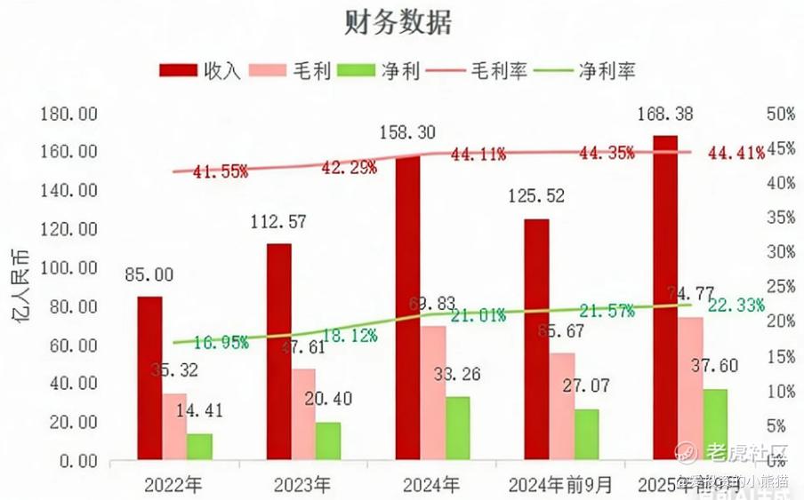净利分别约为人民币14.41亿元、20.40亿元、33.26亿元、27.07亿元、37.60亿元,2025年前9月同比+38.87%;