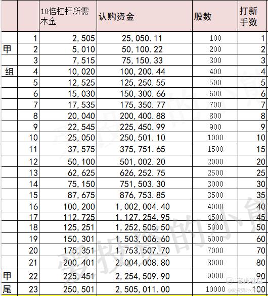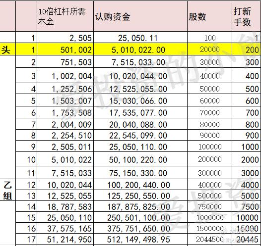 乙头需要认购资金502万,乙组的各档融资所需要的本金还有融资金额对应如下表: