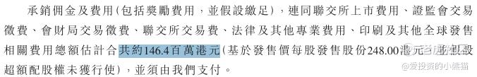 然后这个票招股书上按发售价248.00港元计算,公开的上市所有开支总额约为1.46亿 港元,募资额约101.41亿港元,占比约1.44%,开支相比募资额算是特别少了。