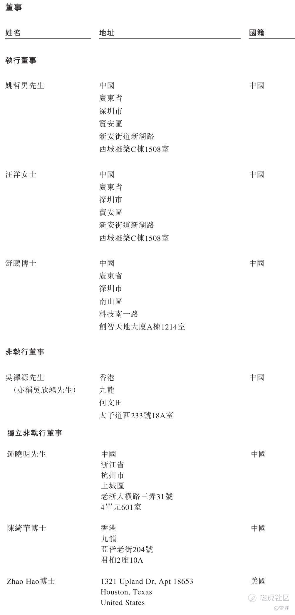 护家科技执行董事分别为姚哲男、汪洋女士、舒鹏博士,非执行董事为吴泽源(亦称吴欣鸿),独立非执行董事分别为钟晓明、陈绮华博士、Zhao Hao博士。