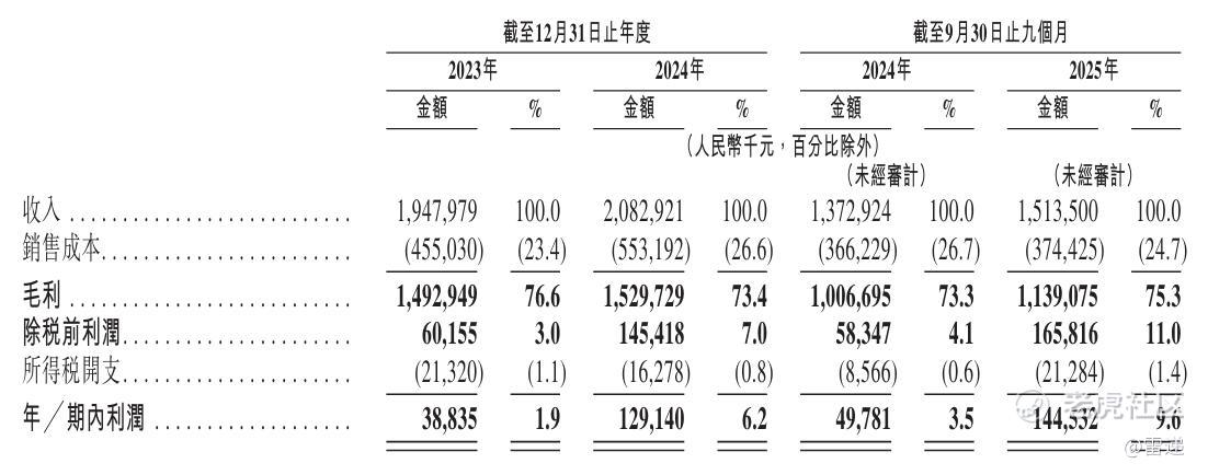护家科2025年前9个月营收为15.14亿元,毛利为11.4亿元,期内利润为1.45亿元。