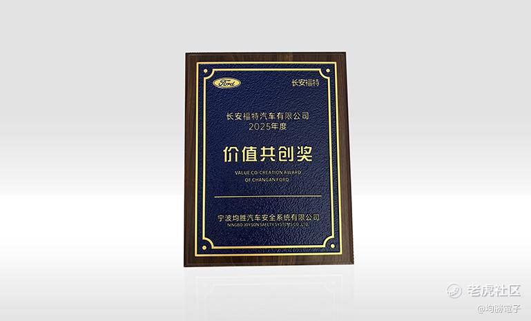 在长安福特2026年供应链伙伴大会上,凭借在产品质量、项目执行与交付可靠性方面的优势,均胜电子旗下均胜汽车安全系统荣膺长安福特“价值共创奖”。