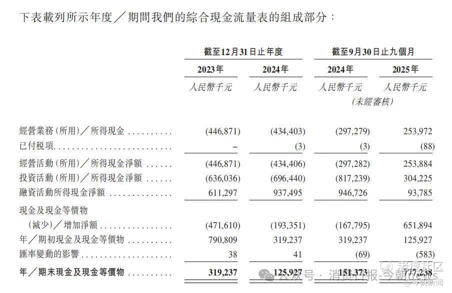 现金流与流动性方面,公司经营现金流2023-2024年持续为负,2025年前三季度虽转正至2.54亿元,但三年累计净流出超6亿元;截至2025年9月30日,公司现金及等价物仅为7.77亿元。