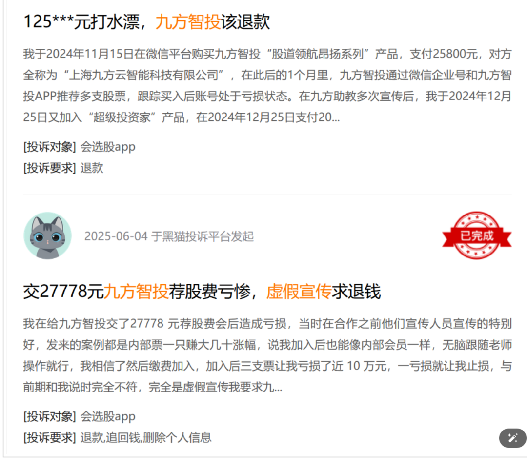 3 、 黑猫投诉以及相关媒体报道的留言中,现在还有大量投诉,不少韭菜缴纳25800购买其所谓的服务,最后亏损要求退款。