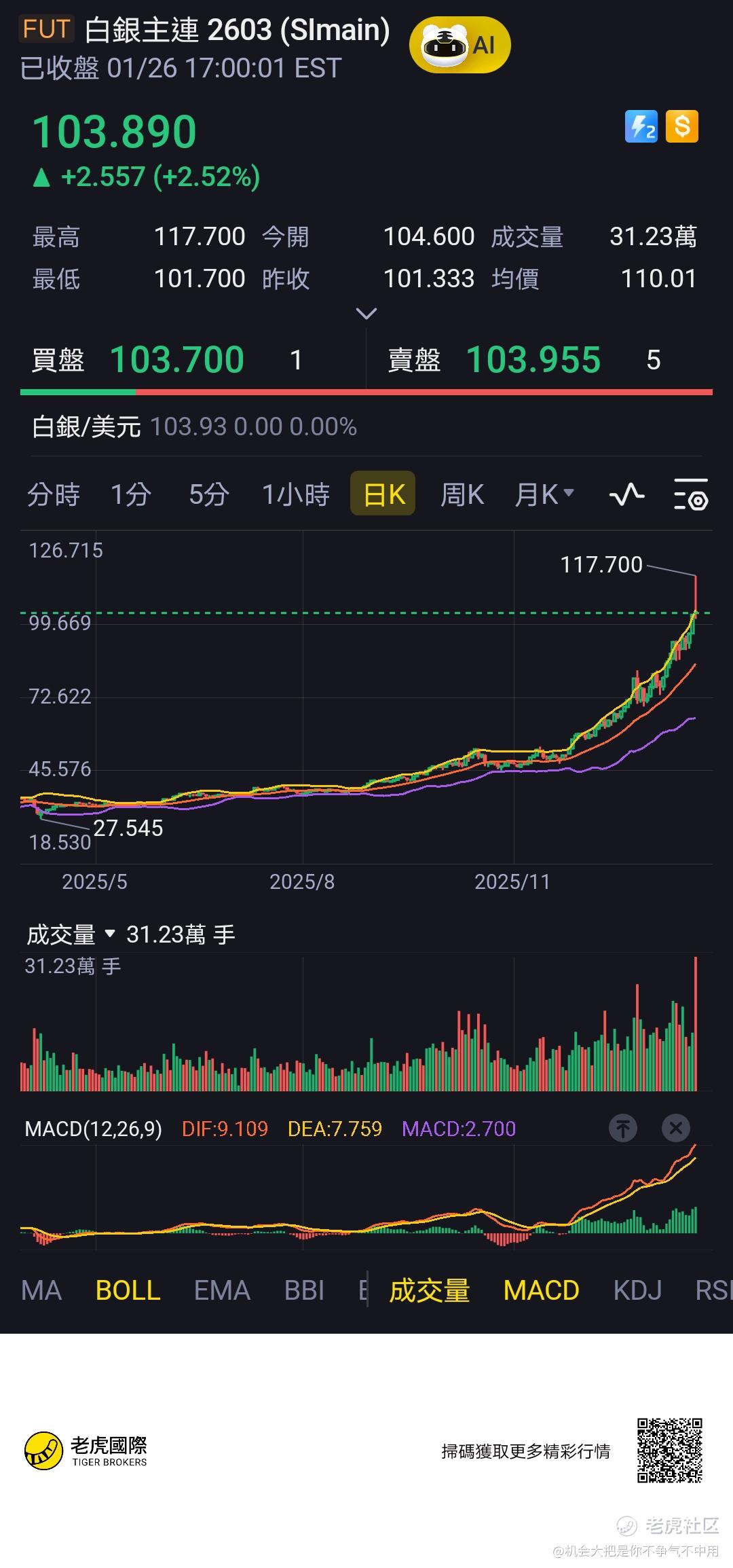 $白银主连 2603(SImain)$ $黄金主连 2602(GCmain)$ 震仓。继续涨