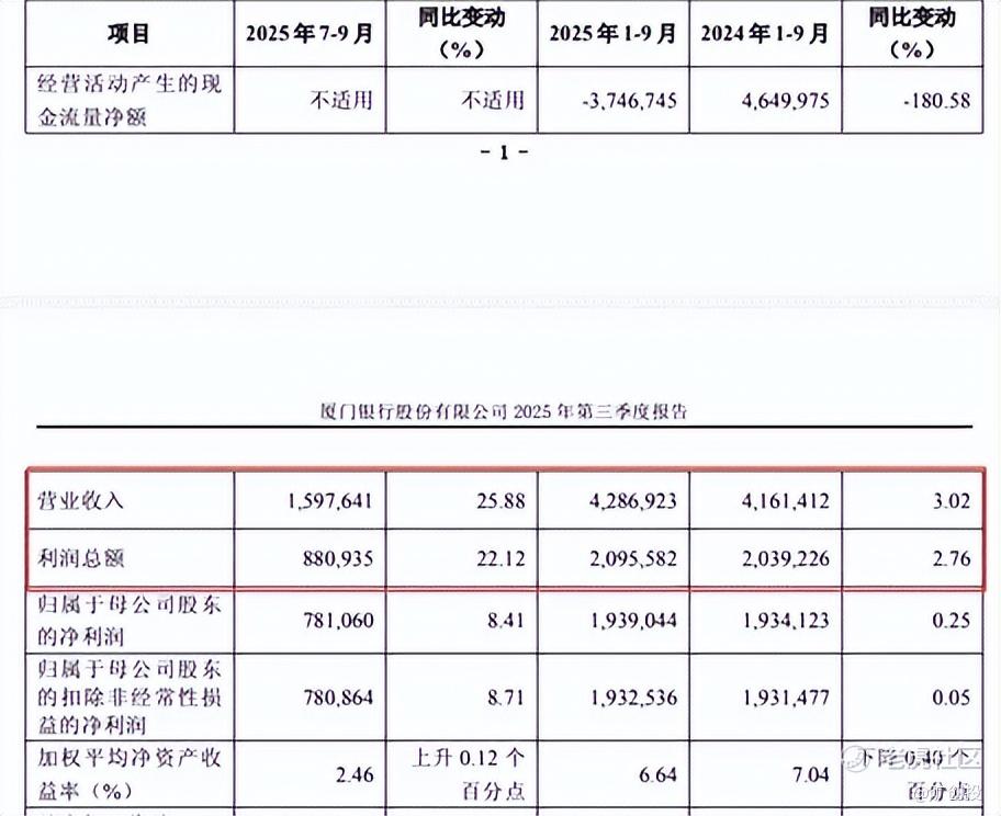 或许没人能想到,短短半年时间,这一策略就有了效果,营收与利润大幅度增长。2025年三季度,厦门银行营业收入为15.98亿元,同比增长25.88%,利润总额为8.81亿元,同比增长22.12%。