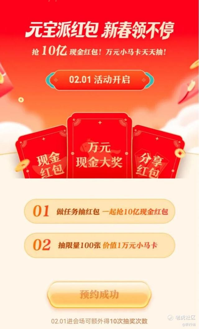 早些时候,腾讯官方也发布了《关于春节分 10 亿现金的通知》:将在 2 月 1 日上线春节活动,用户上元宝 App 分 10 亿现金红包,单个红包金额可达万元。