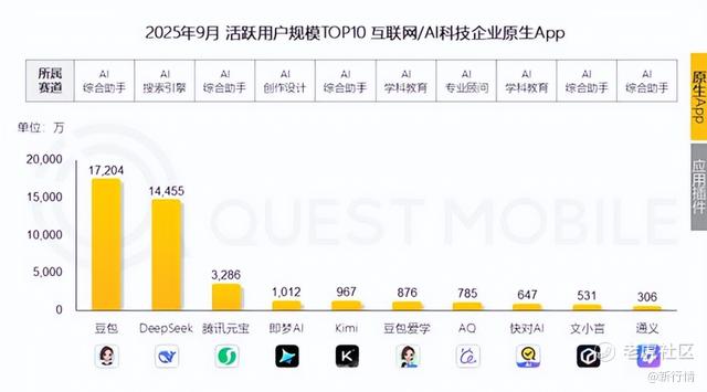 而在Quest Mobile 发布的 2025 年第三季度 AI 应用市场情况分析中,文小言的月活也只有 531 万。