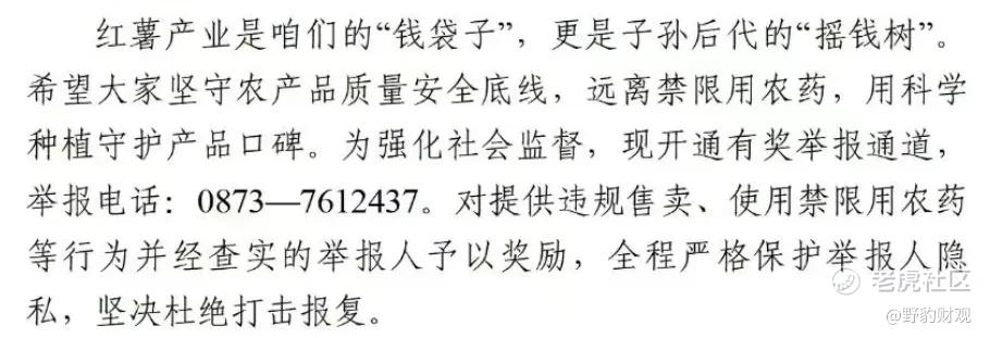 建水县农业农村和科学技术局在《致建水县薯农的一封信》中写道:“红薯产业是咱们的‘钱袋子’,更是子孙后代的‘摇钱树’。希望大家坚守农产品质量安全底线,远离禁限用农药,用科学种植守护产品口碑。”这句话不仅是对薯农的告诫,更是对全行业的警示。