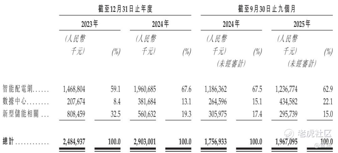 惟远能源2025年前9个月来自智能配电网收入为12.37亿元,占比为62.9%;来自数据中心收入为4.35亿元,占比为22.1%;来自新型储能相关收入为2.96亿元,占比为15%。