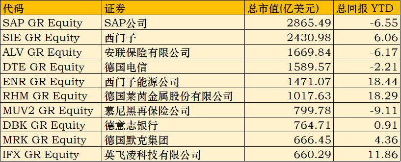 反观德国,前10大公司中,仅有SAP一家软件类公司,英飞凌虽然是半导体巨头,但从AI浪潮中受益有限,其他公司皆为传统产业: