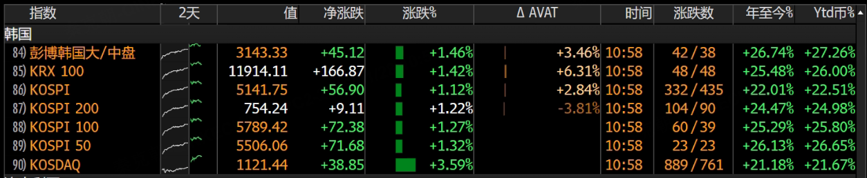 韩国大盘股指数涨幅更高,KOSPI100指数年内涨超25%、KOSPI50指数涨超26%: