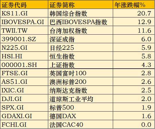 从今年的表现来看,韩国综合指数年内涨幅已超20%,成为全球主流指数中表现最好的!而德国DAX指数年内涨幅仅1.6%: