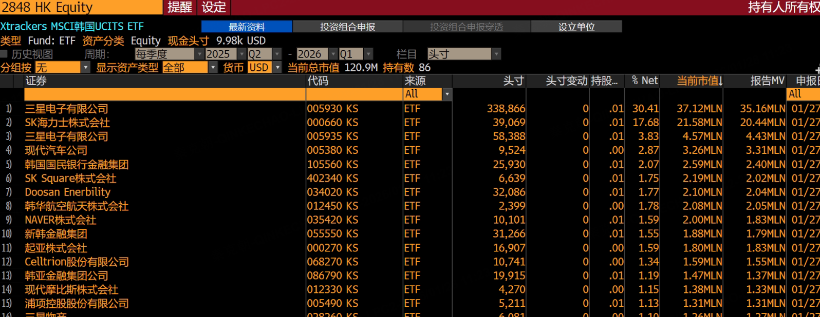 $韩国ETF-iShares MSCI(EWY)$ :规模达百亿美元,流动性好,管理费较低,年内吸引超15亿美金净流入,三星+sk海力士+现代汽车的净值占比超48%:
