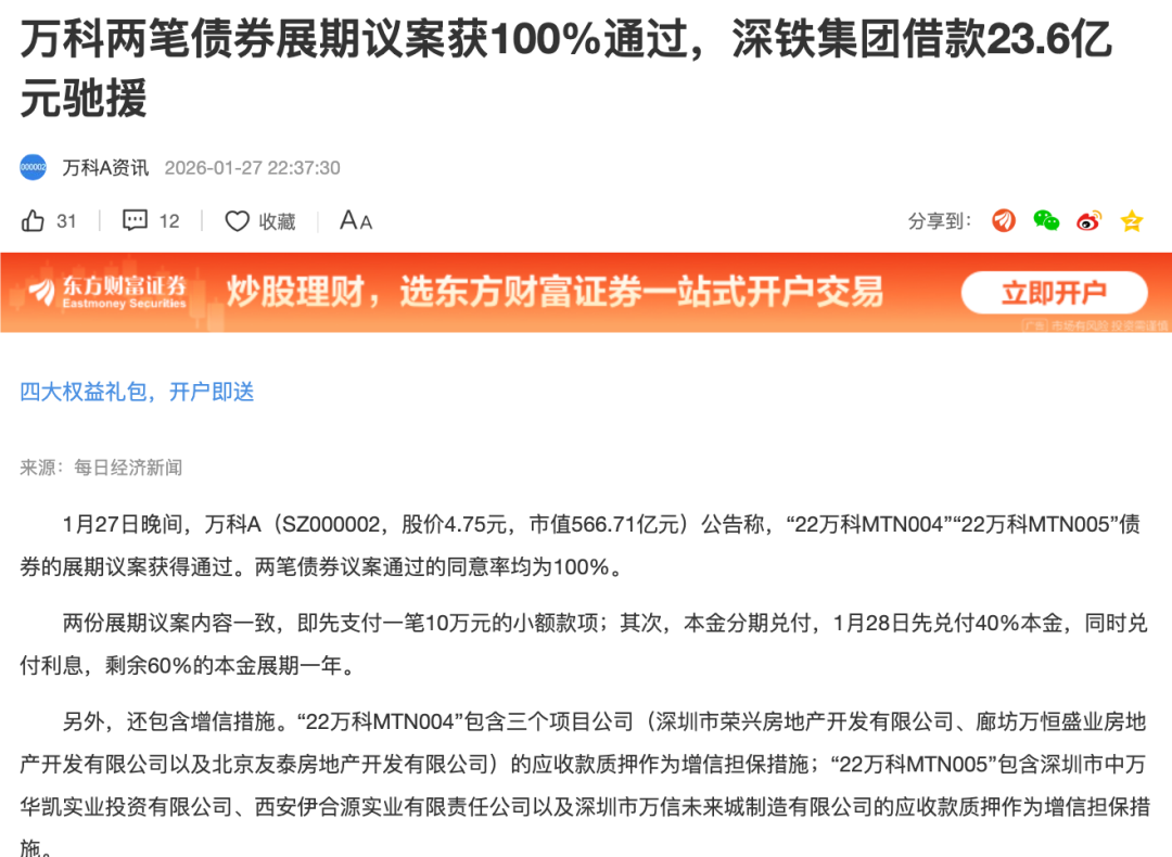 万科获得喘气:郁亮,似乎已失联半月!深铁再次驰援!债务展期!