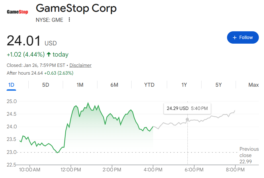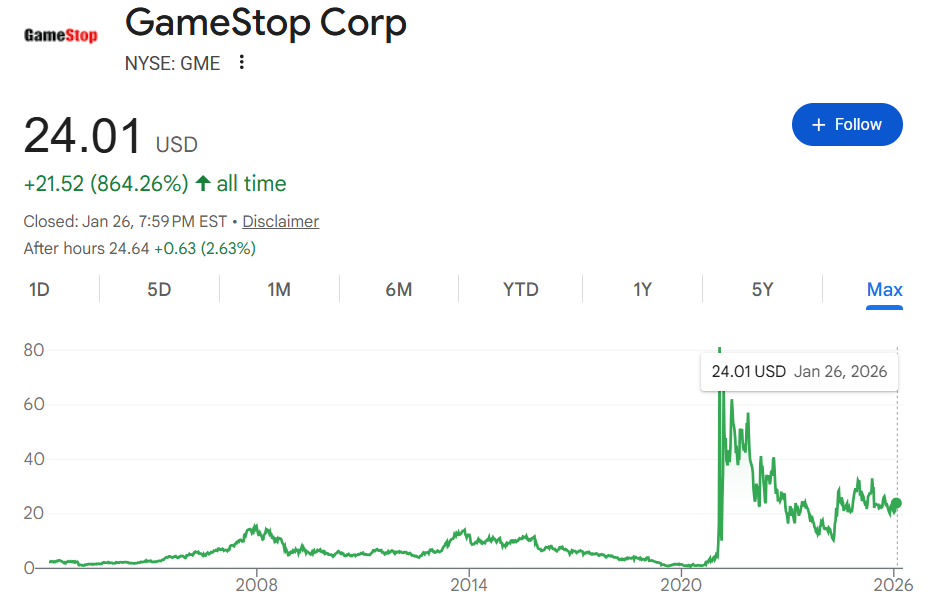 2024年,对“小盘妖股”的炒作热潮再起,基思·吉尔在第二季度回归,再次在社交媒体上发帖,掀起游戏驿站股价热潮,随后又迅速消失,造成游戏驿站股价剧烈波动。