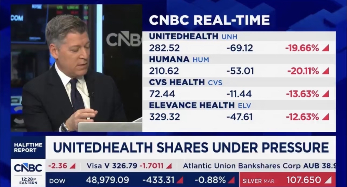 另一方面,UNH的财报,利润端受重组成本侵蚀、Optum增长放缓、管理层在指引层面转向谨慎,对2026财年的收入预期罕见地下调。多家机构纷纷下调公司目标价。