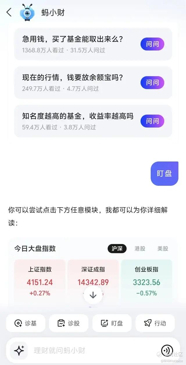 过去十年,蚂蚁用支付宝、余额宝等产品解决民众「有钱花」的社会问题,构建了近9亿月活用户基础的金融服务生态,不过目前金融业务发展成熟,AI+金融主要是在存量市场找增量,天花板依然有限。