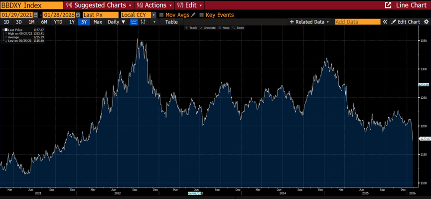近日,特朗普声称将加征韩国关税,加以格陵兰岛的紧张局势,美欧贸易战的摩擦升级。国际地缘政治的不稳定性与贸易战的可能性都令黄金价格居高不下。而美元走强不被看好后,更是令资本涌入黄金。