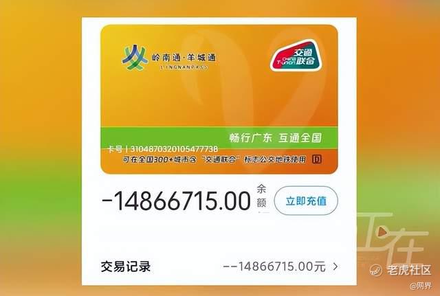 1月27日,广东广州。市民黄先生向媒体反映,其手机电子交通卡在正常乘车后,出现余额显示为负一千四百多万元的异常情况,引发关注。