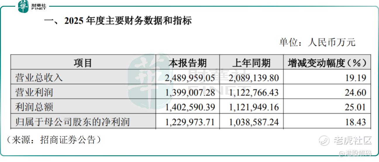 1月27日, $招商证券(600999)$ 亦发布了业绩快报,2025年公司实现营业总收入约249亿元,同比增长19.19%;归母净利润约123亿元,同比增长18.43%。收入与利润均实现双位数增长,经营表现明显好于上一年度。