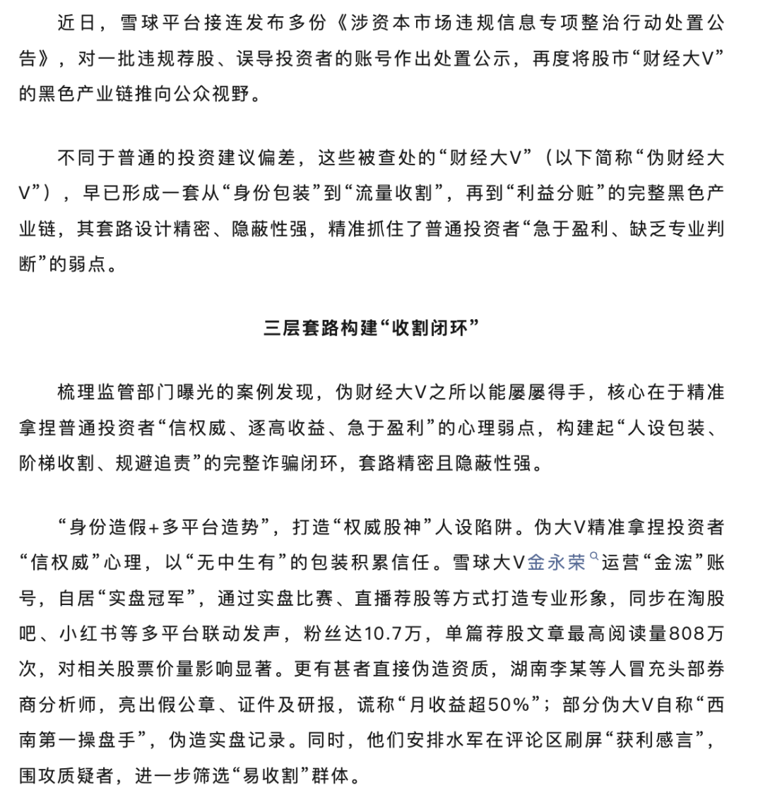 媒体视点 | 拆解股市“财经大V”骗局:三层套路构建“收割闭环”