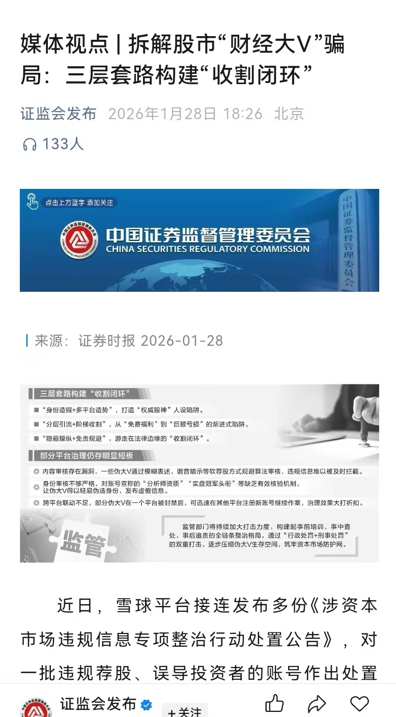 证监会发布:拆解股市“财经大V”骗局:三层套路构建“收割闭环”