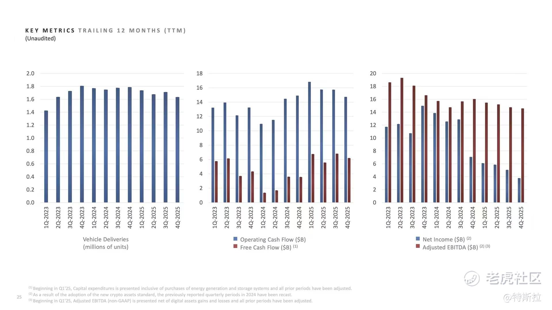2025年,通过推出焕新 Model Y(包括其他衍生车型),完成了对整车产品线的更新。 特斯拉认为,赢得整车市场的正确战略是:保持一个高效精简的产品组合,并持续聚焦于长续航、行业领先的软件和自动驾驶等高价值产品力。与此同时,持续推进面向商业场景、公用事业及零售客户的能源产品迭代,在预期电力需求将长期增长的背景下,进一步夯实我们的定位:提供清洁的、可负担的、可快速装机的能源产品的首选供应商。