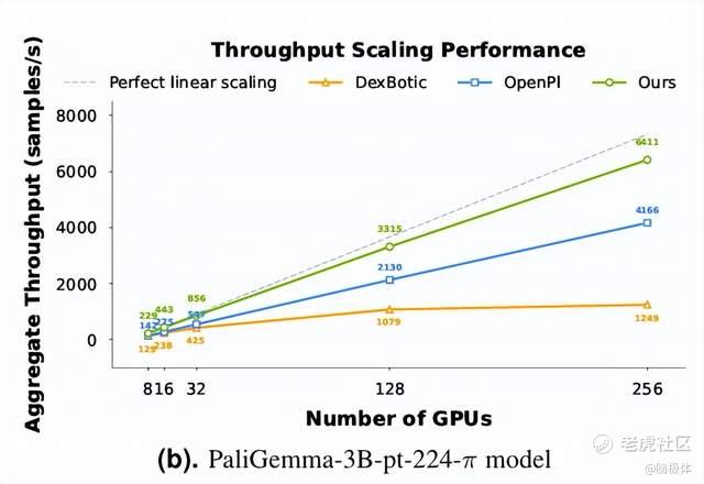从烧钱试错到低成本迭代。LingBot-VLA在8、16、32、128和256张GPU配置下,训练效率都超越了OpenPI和DexBotic。而且GPU数量越大,优势越突出。也就是说,基于LingBot-VLA可以大幅缩短训练周期,降低开发的综合成本。省下的算力和时间都是钱,意味着企业和开发者可以反复迭代、快速试错,在激烈的市场竞争中抢占先机。