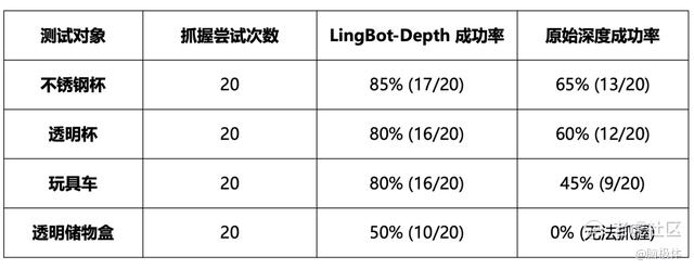 而LingBot-VLA 的泛化能力,部分源于其对高质量三维空间信息的深度融合,这是LingBot-Depth 模型所提供的核心能力,也在1月27日同步开源。