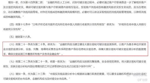 2025年9月,中国人民银行对《金融机构大额交易和可疑交易报告管理办法》进行了修改。将其中的第二十一条改为第二十条,规定“金融机构应该建立并健全大额交易和可疑交易监测系统,并且以客户为基本单位开展资金交易的监测分析,全面、完整、准确地采集各业务系统的客户身份信息和交易信息。”