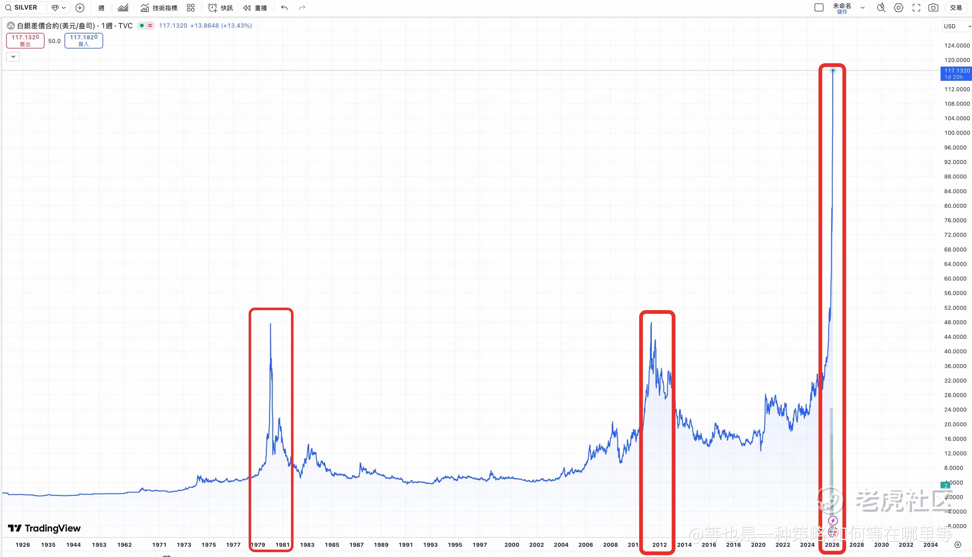 黄金、白银属于大宗商品之一,它们都有大周期。