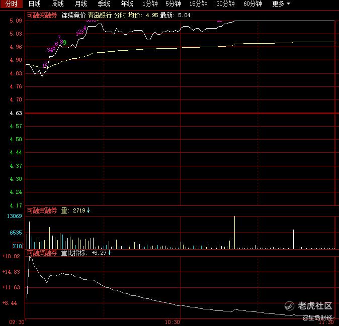 29日,青岛银行以4.87元高开,此后震荡走高,截至上午收盘,报5.09元,封于涨停,成交9.53亿元,换手率6.15%。总市值296.3亿元,动态市盈率为5.71倍。