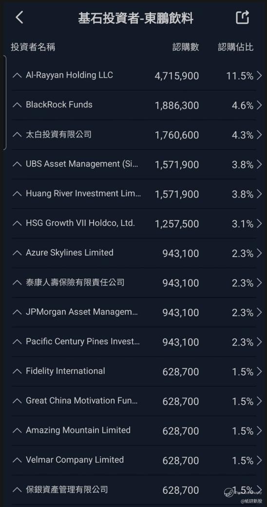 16名,一页也放不完,占比49.2%,阵容豪华,包括贝莱德、腾讯、泰康人寿、UBS等等