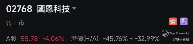 截至1月29日,国恩A股收报$55.78,H股上限定价的话折价32.99%