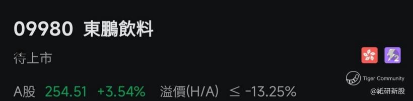 截至1月28日,东鹏A股收报$254.51,H股上限定价的话折价13.25%