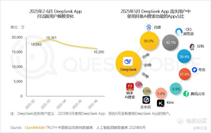 QuestMobile数据显示,2025年5月从DeepSeek流失的用户中,有56%的用户使用了百度,这说明百度搜索在用户心智中仍有重要地位。