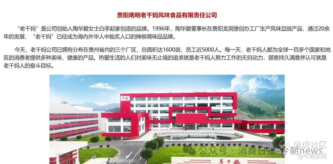 官网资料显示,如今,老干妈公司已拥有分布在贵州省内的三个厂区,总面积达1600亩,员工近5000人。